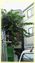 枝が隣家にはみ出してしまい、迷惑をかけてしまっているため、大至急対応してくれ、とのこと。「見てくれはどうでもいいから。」と言うので、ばっさり切っちゃいました。