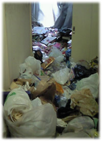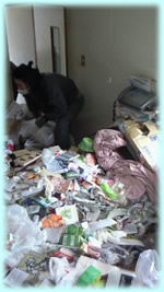 男性より緊急依頼。マンション内で消防点検(立ち入り調査)があるのでそれまでに部屋を片付けないといけない!とのこと。早速見積りに伺いさせてもらうと、玄関先までペットボトルが散乱。 早速ご依頼いただき人員を手配し作業開始。トラック2台分のごみ処分。ハウスクリーニングまでやらしていただきました。 聞けば12年間、掃除してないとのこと。お客様も大満足で「もっと早くに依頼していけば良かった。」と言っていただきました。