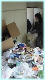男性より依頼。配属先が変わり、会社の寮を退去しなければならないとのこと。ごみの中に必要品が多数あるとのこと。必要品のリストを作成していただき、それに従って作業開始!早朝より開始させていただき、何とか一日で終了。 会社の人間関係のこともあるので内密に作業しました。終了後はお客様も大喜びでした。新天地でのご活躍をお祈りしています。